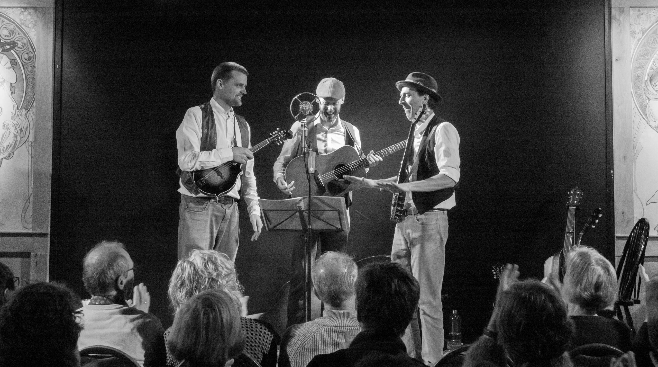 Naast familieleden was traditionele volksmuziek het meest kostbare wat immigranten destijds met zich meenamen naar het beloofde land Amerika. Doordat mensen uit tal van windstreken het met elkaar moesten zien te rooien in veelal barre omstandigheden ontstond er vanzelf een smeltkroes van verschillende muziekculturen. Europeanen mengden Ierse en Schotse songs en ballads (oldtime) met blues en spirituals van de Afrikanen. In de kerk, bij landelijke festiviteiten en tijdens zware arbeid zorgde muziek voor saamhorigheid en broodnodige ontspanning. Rond 1930 begon het nieuwe muziekgenre 'bluegrass' op te bloeien uit de Amerikaanse klei. The Turnip Brothers traceren de historie van bluegrass van het blad tot in de wortels en brengen hun eigen draai hieraan vol enthousiasme ten gehore.Kijk en luister hieronder naar onze video's: